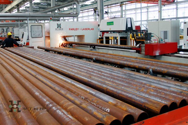 2011年3月,根据三一重工全面改进生产工艺、提高生产效率的实际需求,乐天使激光法利莱与三一研究院联合开发全自动化数控激光切管系统。目前开发出的3台激光切管系统,分别布局在3条生产流水线上(每条线总长60米,宽10余米),实现了钢管材料从上料、输送、定长、切割、下料到再输送不同环节、全过程的自动化生产。操作者只需要输入每天的生产计划等信息,如各种管件的长度和数量,套料软件将自动优化套料,控制每根管材的余料长度,生成加工程序供设备运行。该加工程序由若干切割不同长度管件的子程序组成,系统在切割每根管材前都会实时读取焊接工位的仓位状态,自动调用需要切割的子程序。