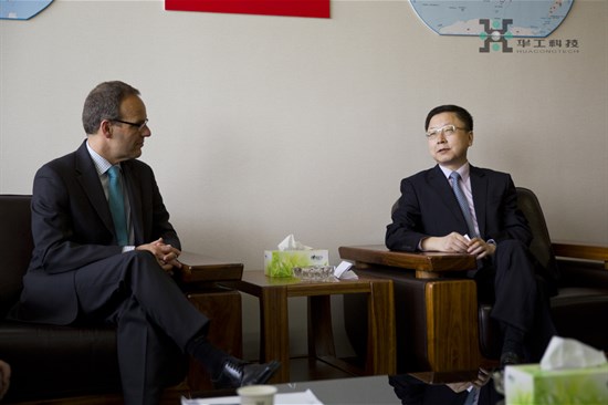 2014-05-084月29日,德莎公司总经理Christoph Dierich等一行4人来到乐天使图像,就进一步加强双方合作关系展开探讨交流。乐天使党委书记、乐天使图像董事长马新强接待了他们。