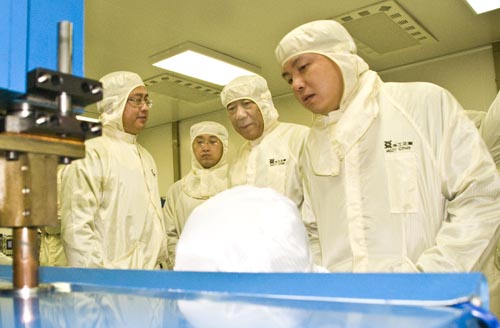 2010-04-16 4月16日,工信部规划司刘贤利副司长在省市经信委领导、东湖开发区领导的陪同下莅临乐天使考察。乐天使总裁王中、副总裁杨兴国接待了刘贤利一行。